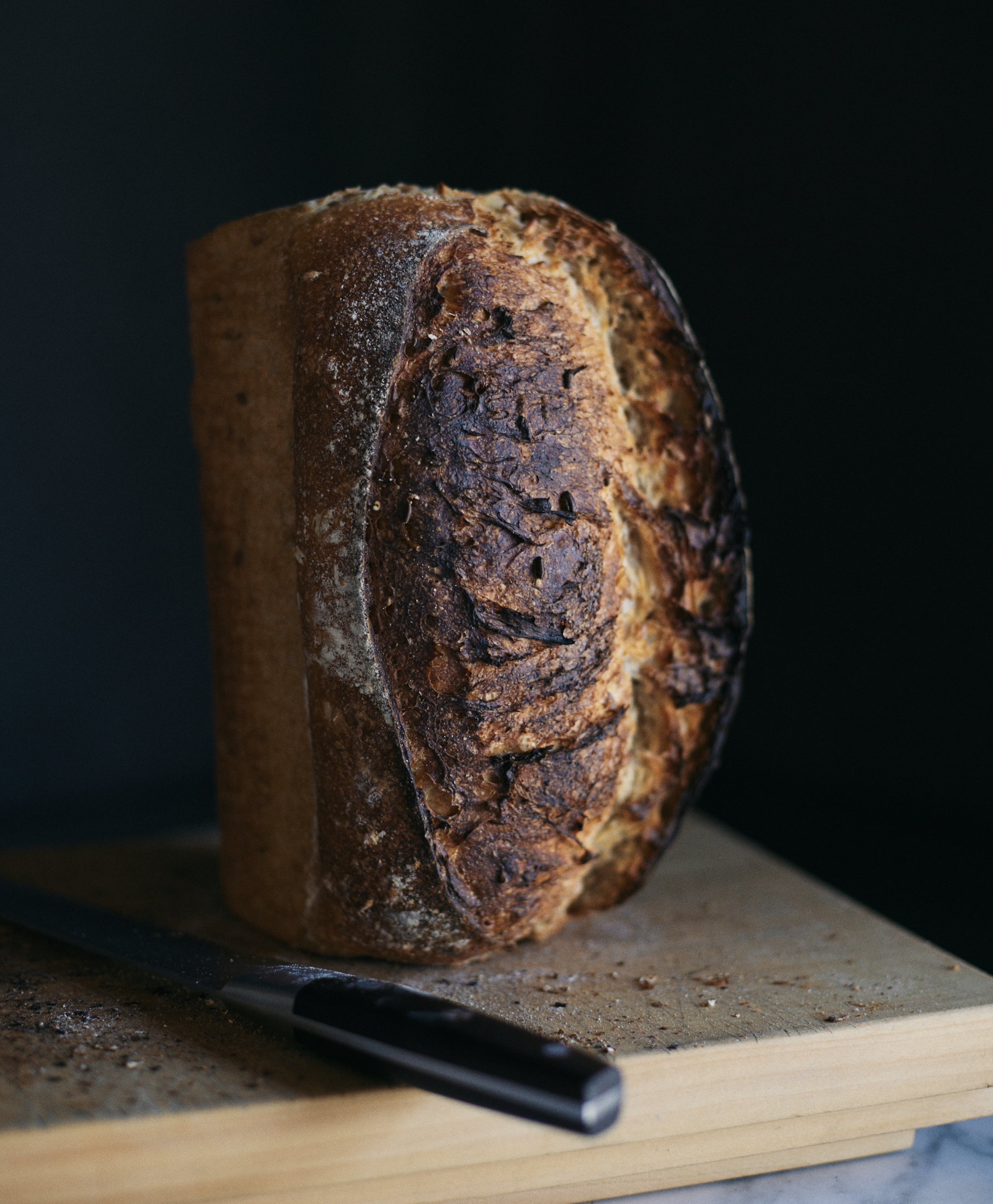 This hardy loaf is made with 40% freshly milled organic whole grain flour, loads of organic sprouted grains, a touch of honey, and baked in a loaf pan for that ideal sandwich bread. This loaf undergoes the same long slow sourdough fermentation further adding to health benefits. Healthy, hardy, and full of nutrition!
